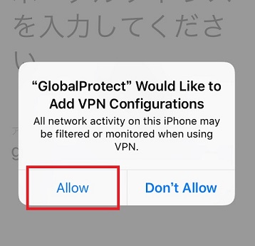 - 接続の許可について聞いてくるので「Allow」をタップします。