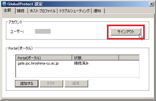 5. 状態が未接続となっていればVPN接続は終了しています。