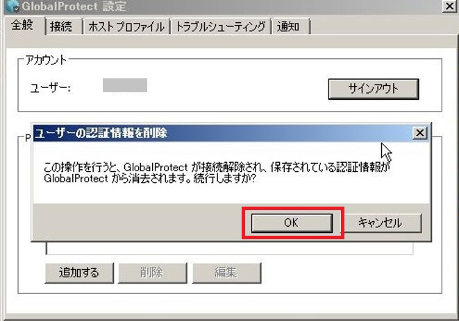 4. ユーザー認証情報を削除の画面が表示されるので「OK」をクリックします。