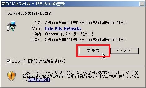 • セキュリティの警告が出た場合は、「実行」をクリックしてください。